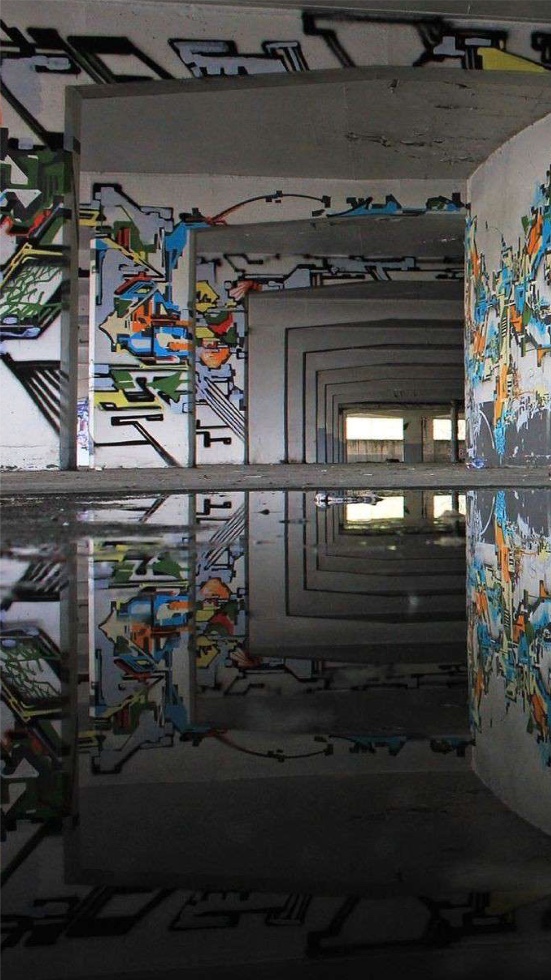 Les graffitis qui recouvrent les murs sont conservés : témoins de l’appropriation populaire du lieu, ils participent à sa mémoire et enrichissent l’expérience spatiale.