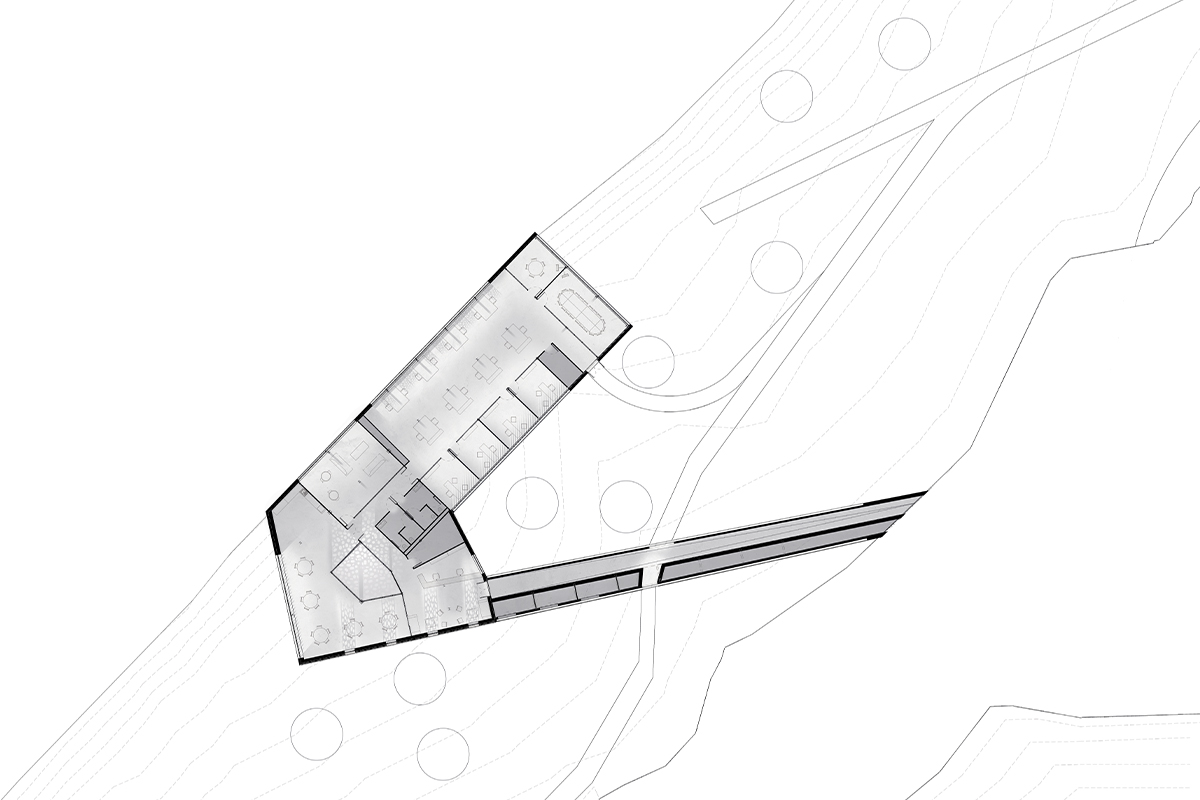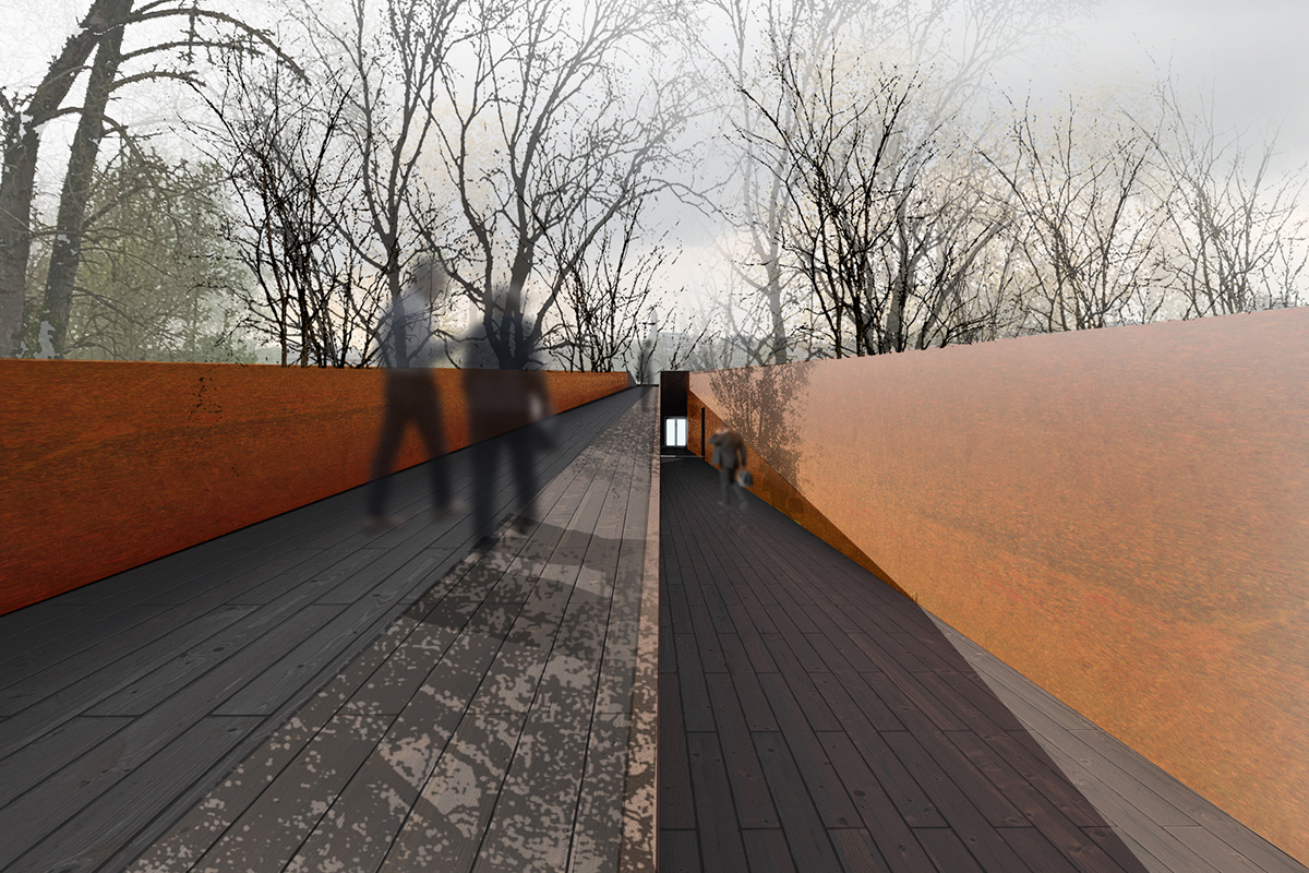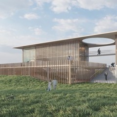 Le projet architectural développé individuellement est un équipement administratif permettant l’accueil de visiteurs dans le cadre d’un parcours artistique. Pourvu d’un parking public végétalisé, la configuration du bâtiment vise à repenser l’accès au site naturel qu’il dessert.