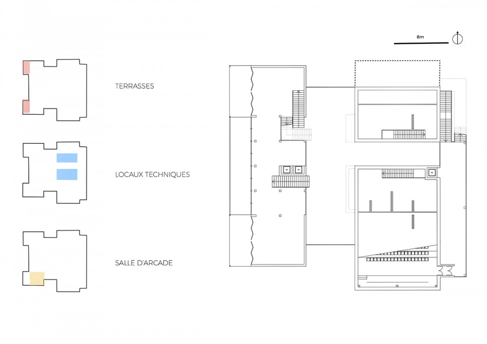Positionné au nord du projet urbain, le cinéma se place comme premier repère et signal du nouveau pôle culturel que le quartier accueille.